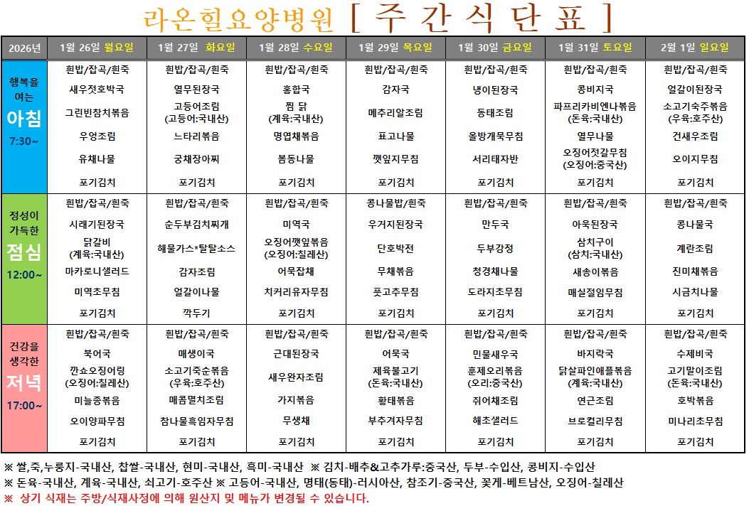 주간식단표(26.01.26~26.02.01)