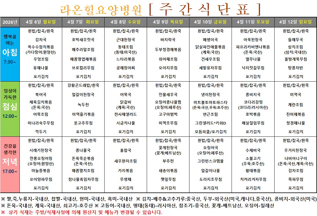 주간식단표(26.04.06~26.04.12)