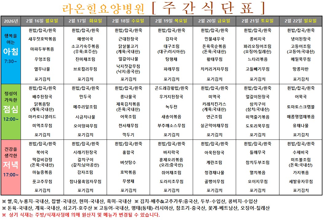 주간식단표(26.02.16~26.02.22)